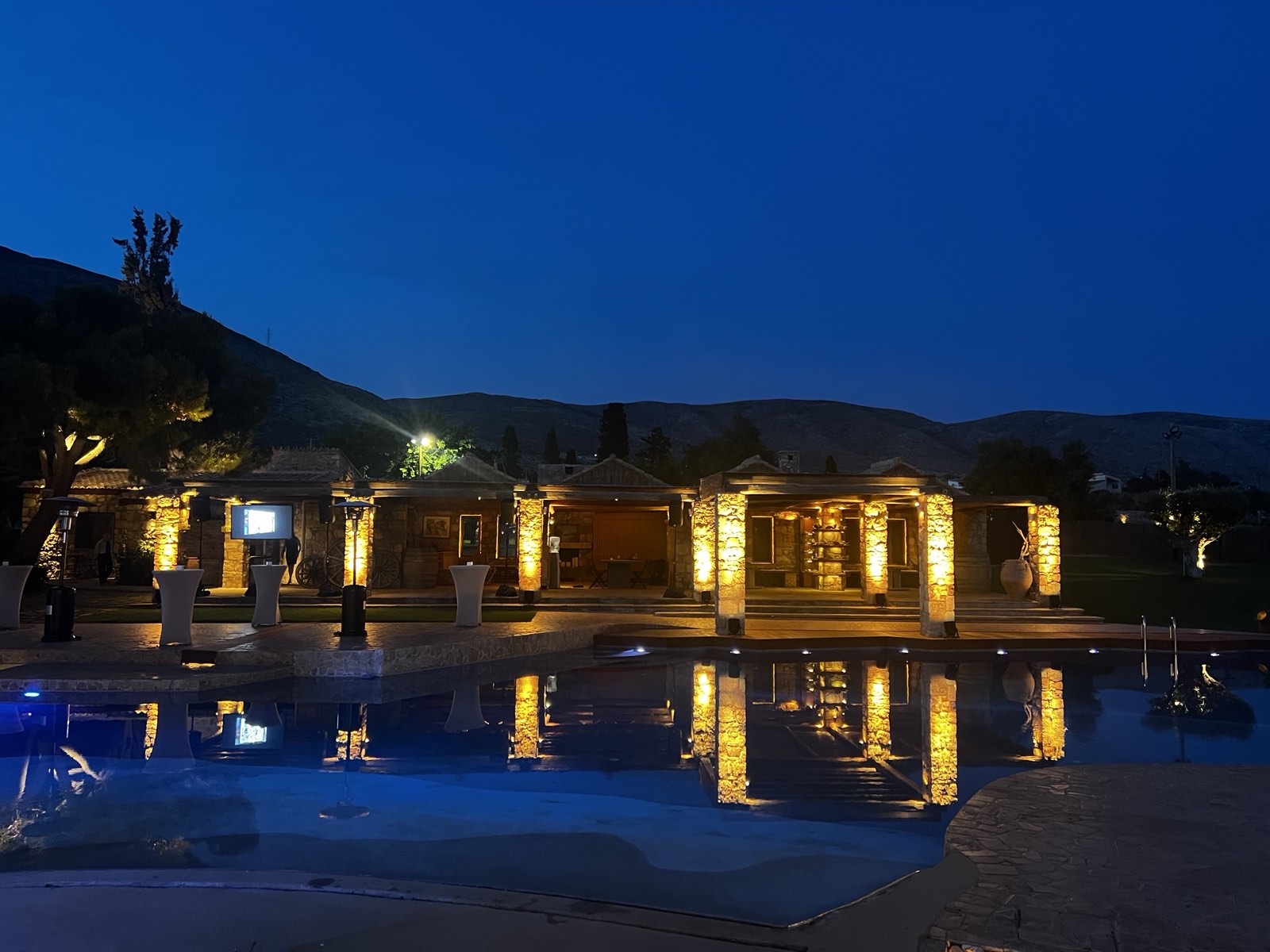 Το τεράστιο πετρόχτιστο, πλήρως εξοπλισμένο μπαρ των 14 μέτρων, η φωτιζόμενη πίστα χορού, η υπερυψωμένη θέση για τον DJ, τα πέτρινα καθιστικά και ένας τεχνητός ποταμός ακριβώς μέσα στην πίστα, εγγυώνται το ιδανικό περιβάλλον γιά ένα επιτυχημένο πάρτυ, όπου ο χώρος μετατρέπεται σε ένα φιλόξενο « club », με μπαλκόνι προς την θάλασσα.