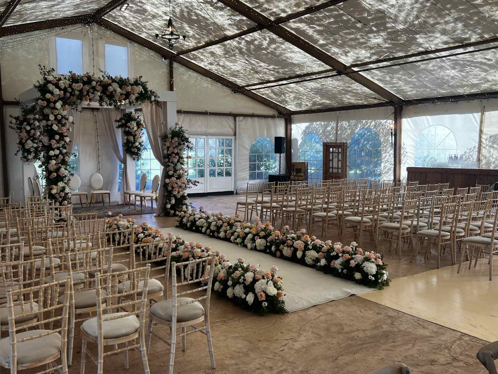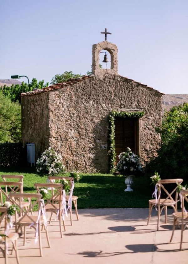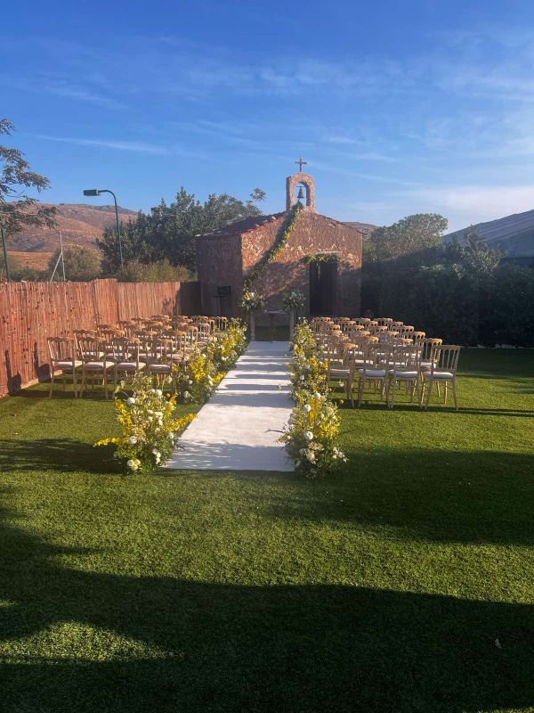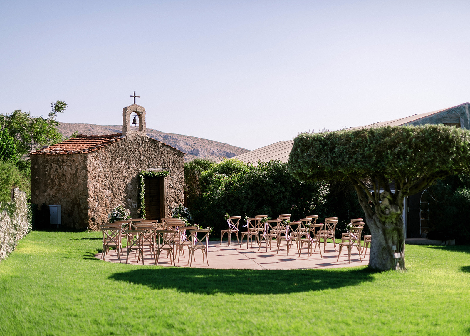 Στο προαύλιο της μικρής παλιάς εκκλησίας του Αγ. Γεωργίου, τελούνται τα μυστήρια. Η δε, ζωγραφισμένη από την ζωγράφο Μάχη Μετζέλου, μόνιμη τέντα των 525m2 ακριβώς δίπλα, προσφέρει την απόλυτη ασφάλεια για όλες τις καιρικές συνθήκες.
