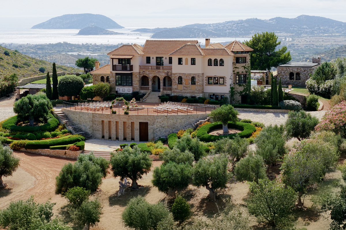 Δεσπόζοντας στον λόφο της Σιντερίνας, στη νότια Αττική, το κτήμα είναι κάτι πολύ περισσότερο από ένας χώρος εκδηλώσεων. Αποτελεί σημείο αρχιτεκτονικής και πολιτισμικής αναφοράς, προσελκύοντας ζευγάρια που αναζητούν υψηλή αισθητική, κομψότητα και υπηρεσίες εξαιρετικού επιπέδου.