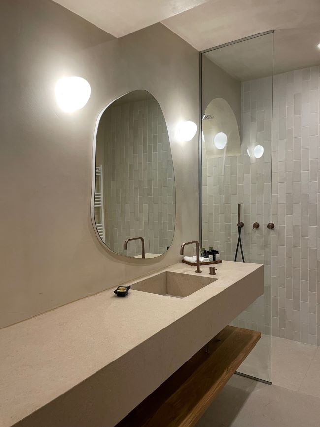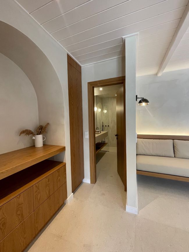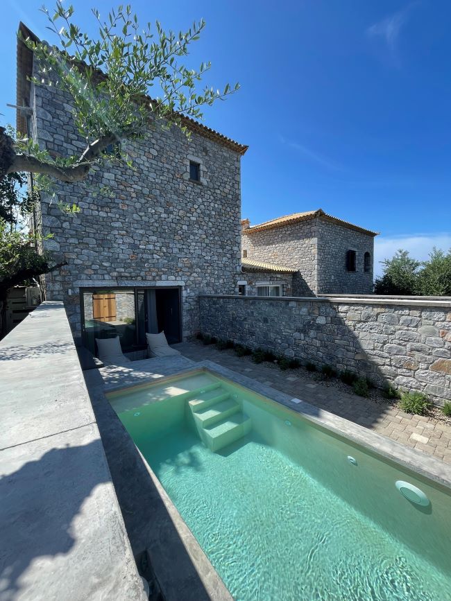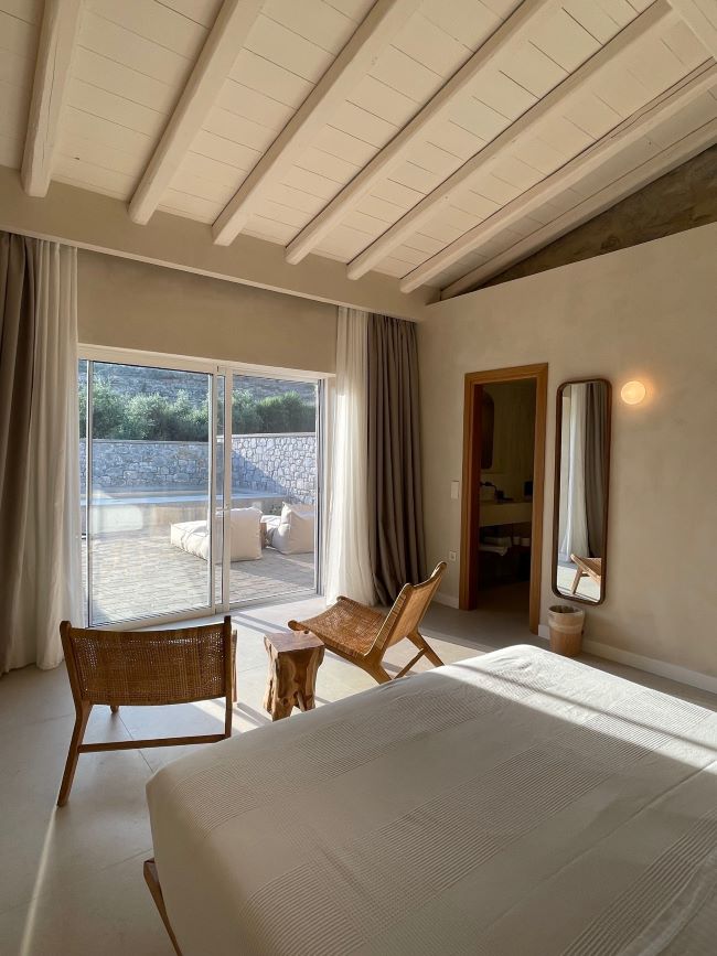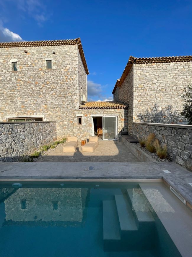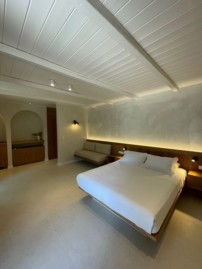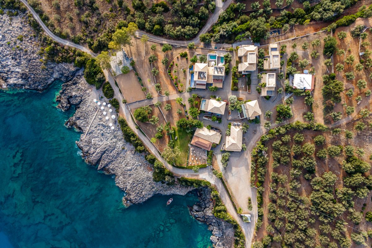 Το ξενοδοχείο αποτελείται από κομψές πέτρινες κατοικίες, στούντιο και διαμερίσματα υψηλής αισθητικής, με θέα στη θάλασσα, στον κήπο ή στο βουνό. Με πολλαπλές πισίνες για χαλάρωση και σε απόσταση λίγων μόνο βημάτων, ένας ήσυχος, διαμορφωμένος βραχώδης κολπίσκος προσφέρει στιγμές γαλήνης και επαφής με τη φύση.